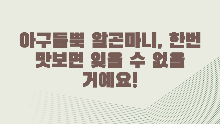 단순히 맛있는 아구찜을 넘어, 잊지 못할 추억을 선사할 '아구듬뿍 알곤마니'의 모든 것을 지금부터 자세히 알려드릴게요.