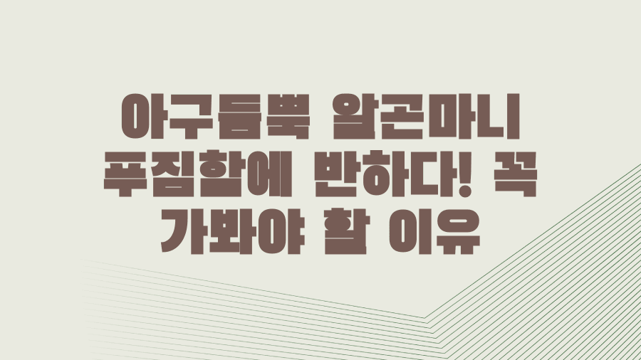 혹시 오늘 소개된 내용 외에 더 궁금한 점이 있으시거나, 여러분만의 '아구듬뿍 알곤마니' 방문 후기가 있다면 댓글로 자유롭게 남겨주세요.